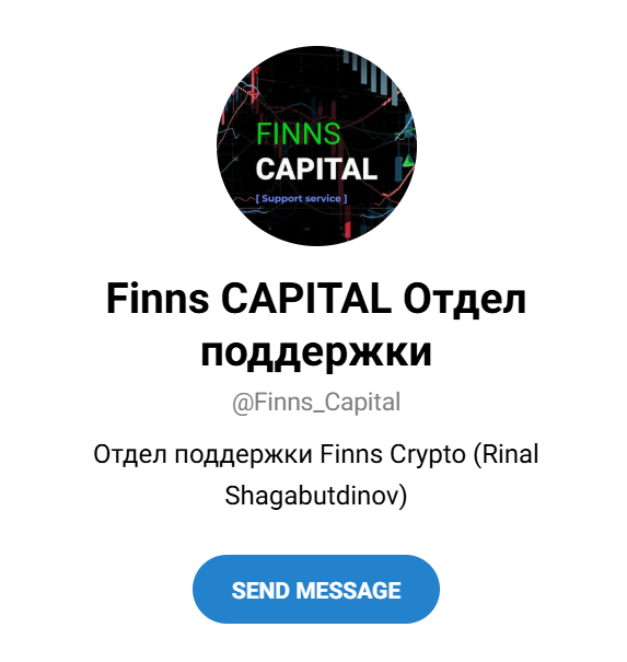 Подписчики могут получить поддержку, обратившись на аккаунт с ником Finns capital. На него рекомендуют писать при желании подписаться на платный закрытый канал.