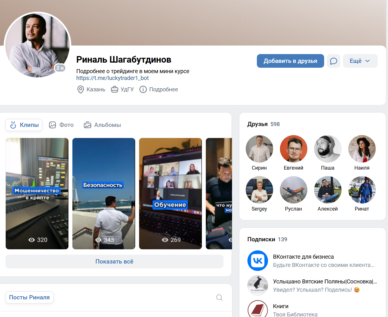 На личной странице в VK трейдер делится достаточно детальной информацией о себе. В частности, сообщает о дате рождения, образовании и профессиональной деятельности. Автор Finns capital получил профессию, связанную с нефтегазовой отраслью, о наличии специальности в инвестиционной сфере и трейдинге ничего не сказано.