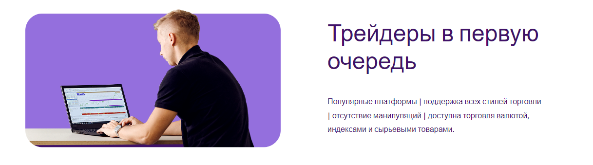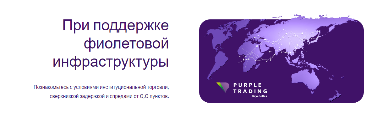 Компания представляет собой продукт авторитетного холдинга Purple Trading, предоставляющего брокерские услуги. Он постоянно проходит аудит, обладает международными сертификатами FCA и CONSOB, лицензией CySec.