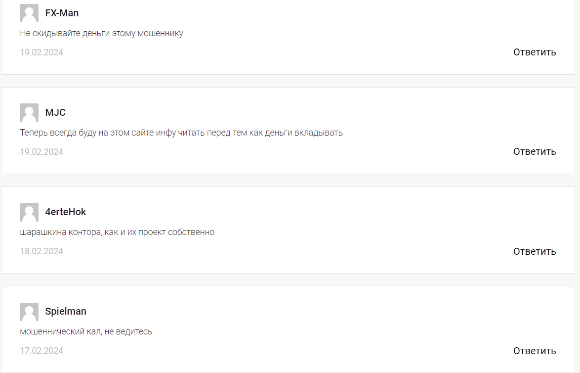 В негативных отзывах мы обнаружили, что недовольные подписчики не обратили внимание на риск при использовании таких сомнительных рекомендаций. Скорее всего, они потеряли свои деньги, а оставить отзывы смогли только на сторонних сайтах.