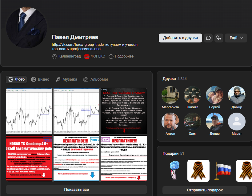 Павел Дмитриев представлял профессиональным трейдером в VK. Вот так выглядела его страница.