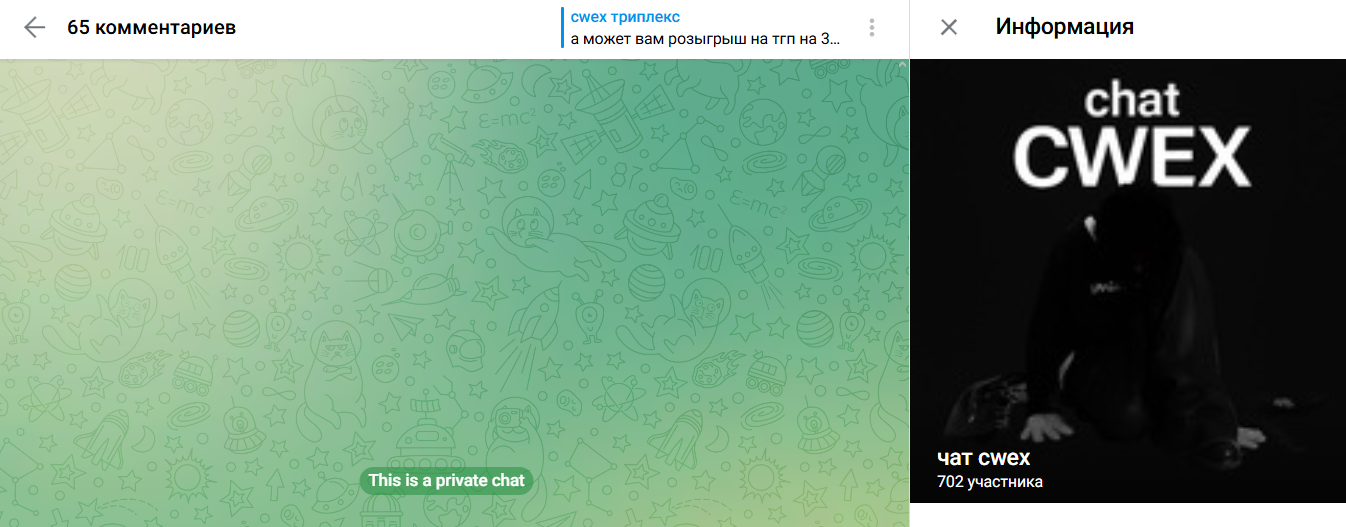 Его создатель @fuckcwex, он же главный ведущий всех розыгрышей, раздач, обновлений и объявлений. Несмотря на дерзкое оформление и шутливый стиль, канал держится в рамках правил сообщества: в описании указано, что все публикуемое вымышленное, а контент в развлекательных целях.