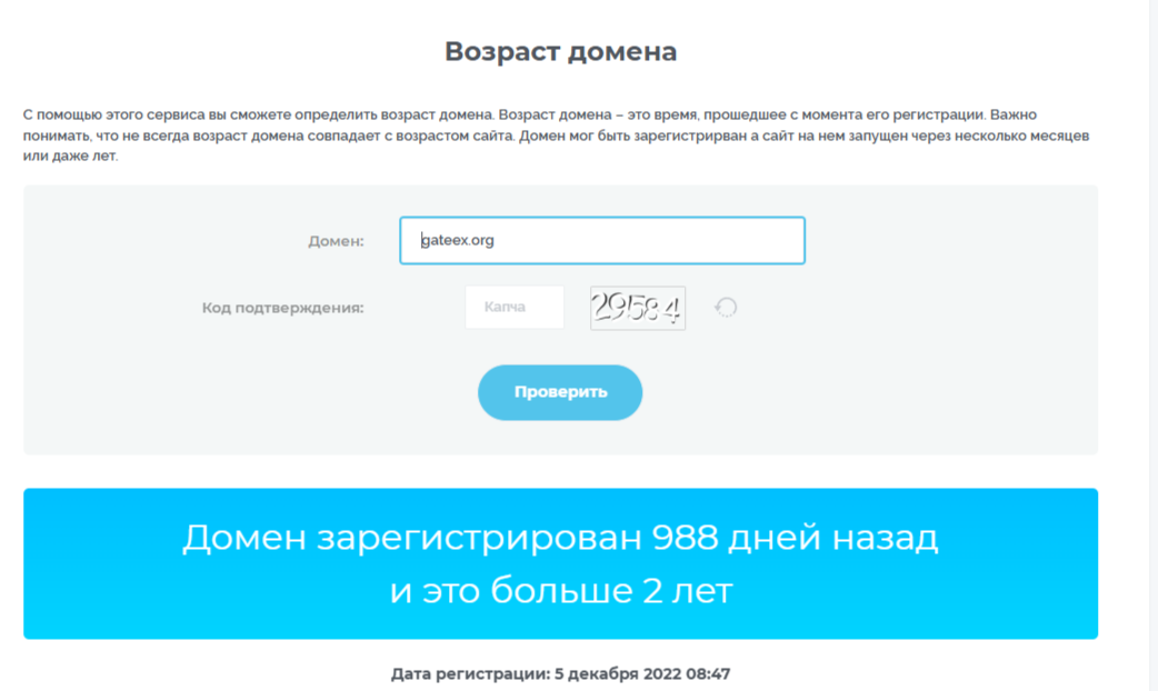 В процессе проверки веб-сайта криптобиржи Gate exchange мы определили, домен gateex org был зарегистрирован 5 декабря 2022 года. Он не может принадлежать торговой платформе, которая ведет свою деятельность более 12 лет. Ведь порталу биржи исполнилось чуть больше двух лет.