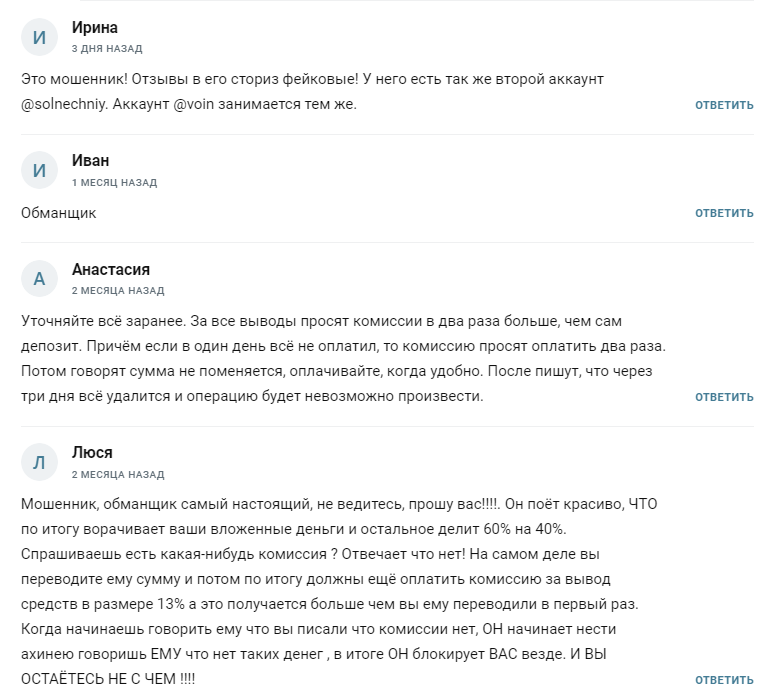 В аккаунте gate.io нет полезного контента и каких-либо разборов активов или анализа рынка. Публичного портфеля автор не ведет, нет верифицированных данных о доходности. Разводит пользователей на дополнительные траты, объясняя их то налогами, то комиссиями. Учитывая, что эти суммы рассчитаны из конечной прибыли, они перекрывают даже первоначальный взнос. Суммарно потери клиента могут составлять до 500-600 тысяч рублей. Далеко не каждый готов внести такую сумму, но есть наивные инвесторы, которые даже брали кредиты под гарантию инвестора Gate Io.