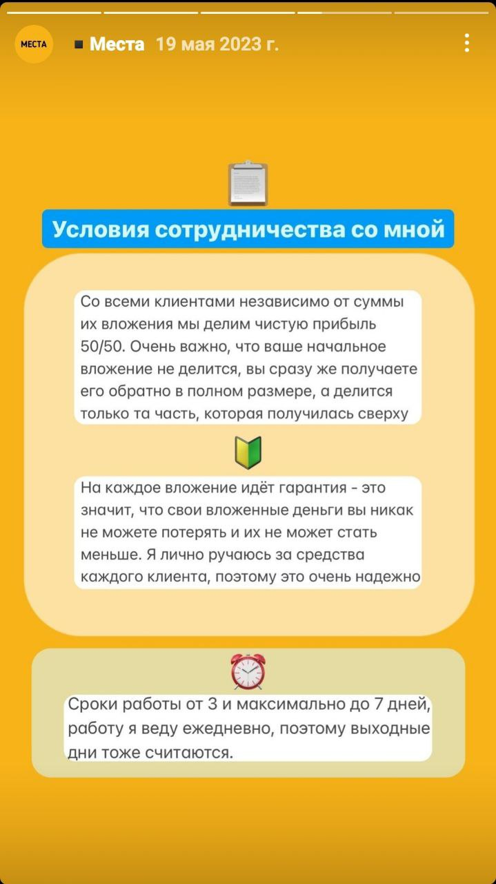 Инстаграм мошенник Gate Io предлагает подписчикам совместное инвестирование. Это доверительное управление капиталом под руководством безымянного трейдера. Условия предложены следующие: