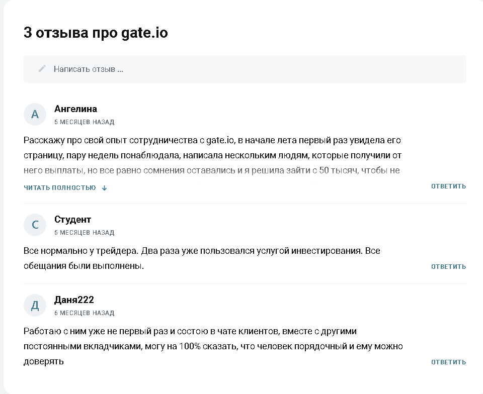 Отзывы трейдеров о работе с Gate Io Инвестор