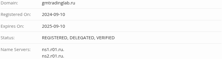 Команда консультационного проекта скрывает информацию о старте образовательной платформы в сети. Мы узнали недостающие данные через аналитический сервис WHOIS. Проверка показала, что онлайн-сервис по обучению студентов GM trading lab стартовала 10.09.2024 года.
