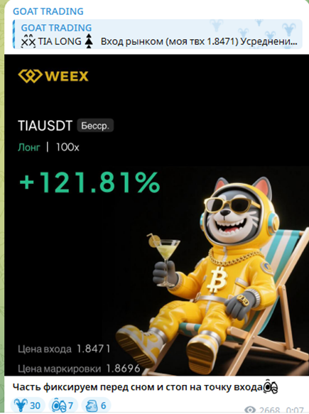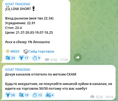 Повторимся, на Goat trading telegram в сети отзывов нет в принципе. Но нам удалось найти несколько обзоров данного канала.