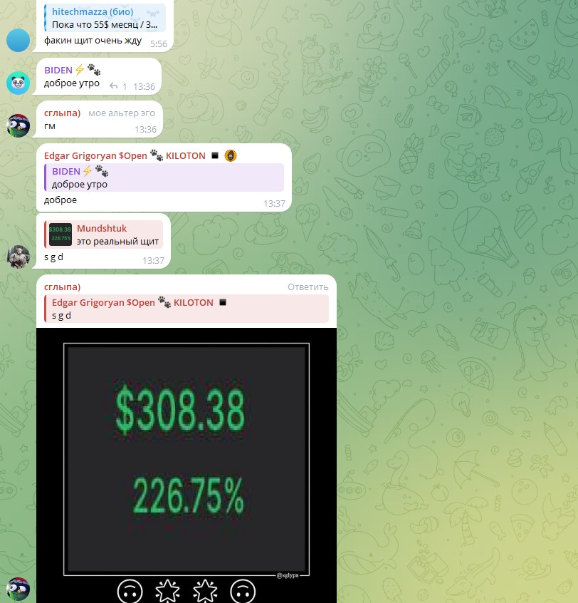 Стоит учитывать, что ТГ канал «Хайзон» носит информационный характер. Это не проект по инвестициям. Трейдер не принуждает отправлять ему деньги и не заманивает на неизвестный сайт. Tg Syprion можно написать в личном чате. И вот там уже получить рекомендации или схемы трейдинга. А вот стоит ли доверять его советам – большой вопрос, так как никаких подтверждений профессионализма, кроме комментариев подписчиков, нет. Поэтому не рекомендуем вкладывать большие деньги по сигналам блогера.