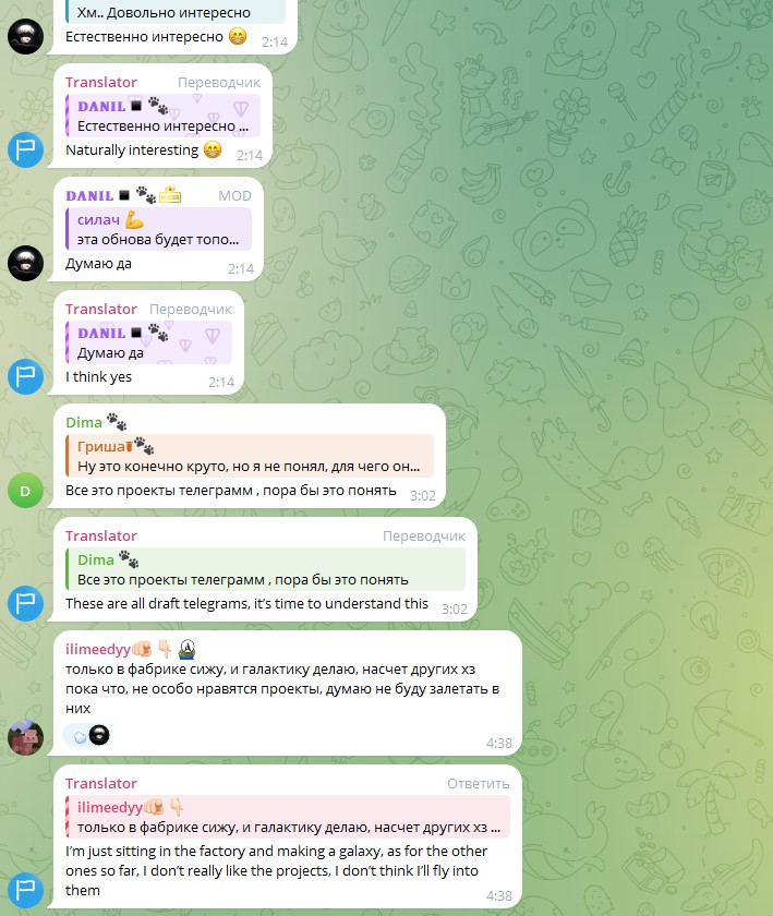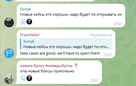 Стоит отметить, что сообщения юзеров в комментариях к постам дублируются ботом-переводчиком на английском языке.