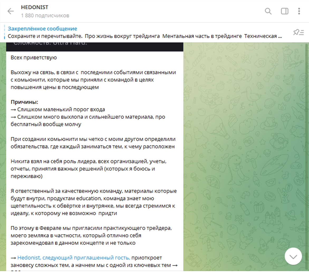 Обзор канала трейдера в тг Hedonist: отзывы и анализ услуг от «Гедонист»