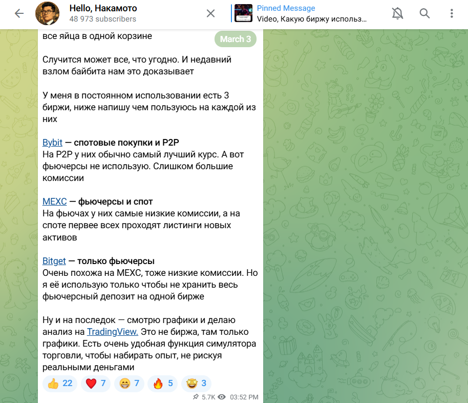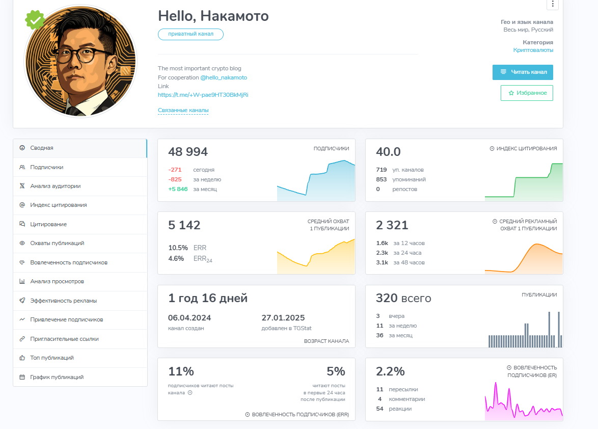 При этом количество подписчиков в канале Hello Накамото превышает 48 тысяч человек, а среднее количество просмотров не превышает 5-10%, что говорит о накрутке ботов. Из-за этого неизвестно, какая реальная численность аудитории.