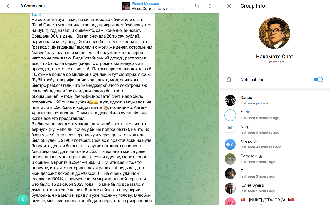 В телеграм канале Hello Nakamoto, подписчики не оставляют отзывы под публикациями, а лишь делятся своим опытом и мнением. При этом в канале можно заметить различных ботов, которые через ссылки в профиле рекламируют сомнительные каналы и ресурсы, из-за чего необходимо быть осторожным.
