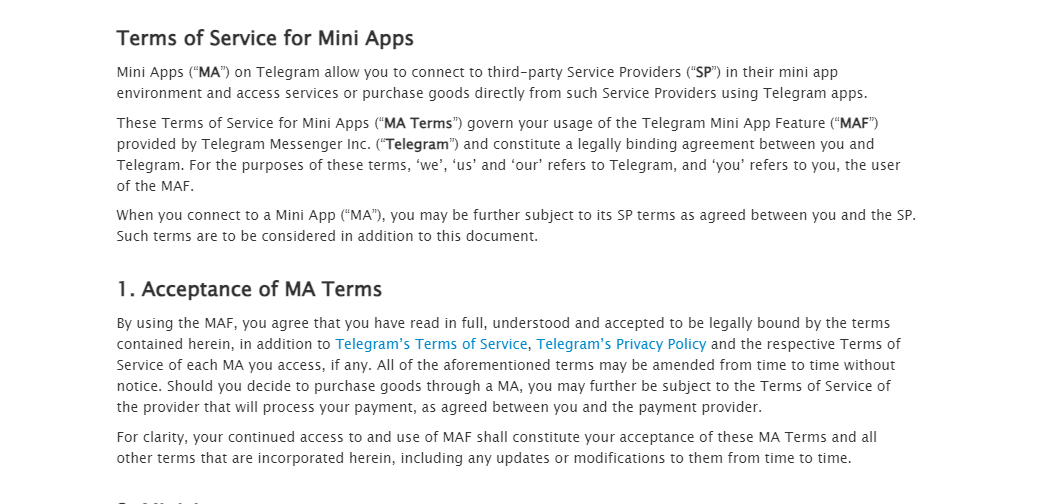 Обнаружен интересный факт пользовательского соглашения, с которым соглашается пользователей в начале работы. Это просто правила работы с мессенджером Telegram. В соглашении нет ни слова про биржу или компанию, которой торговый бот принадлежит.