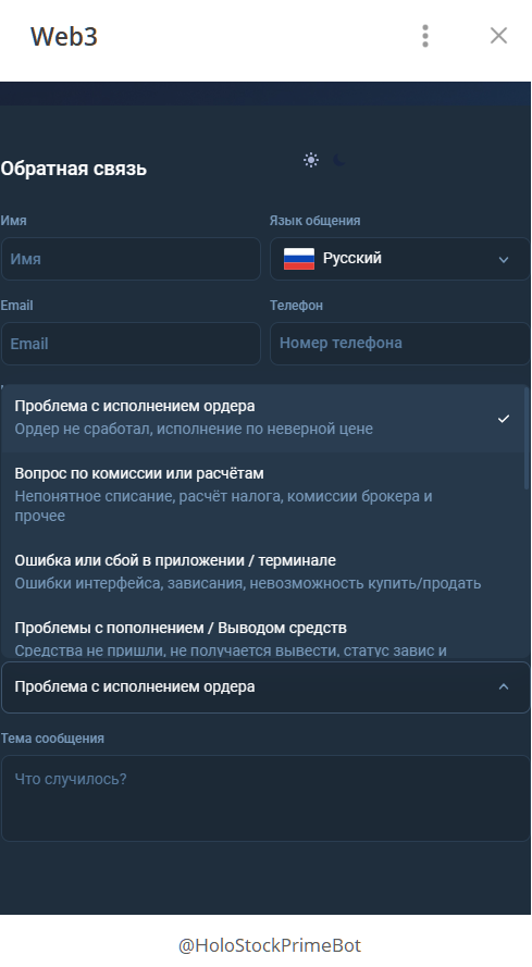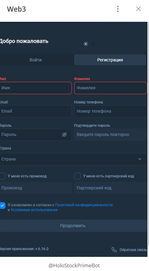 Появилась новая афера в ТГ – криптовалютная биржа бот Holostockprimebot Web3. Условия торговли и терминал представляют собой идеальную имитацию обычной биржи криптовалют.