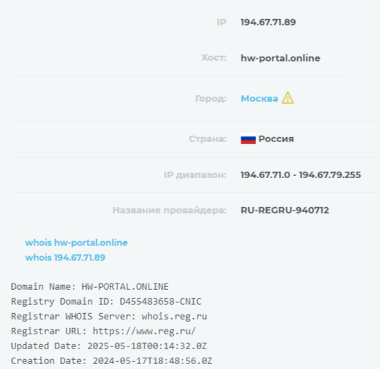 С таким сомнительным подоход администрации есть предположение, что реальная дата создания проекта Hw Portal Online именно 18 мая 2025 года, когда у ресурса был ребрендинг. Скорее всего, мошенники перекупили чей-то домен. Но почему площадка уже перестала функционировать – остается под вопросом.
