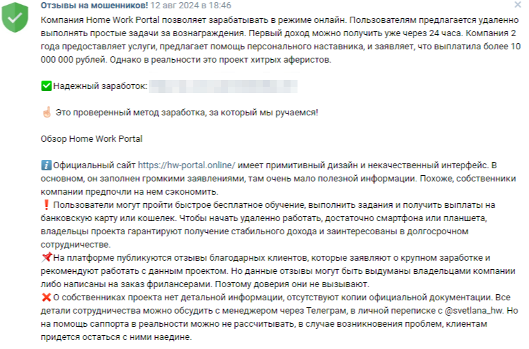 По итогам нашего расследования мы пришли к результату, что сервис Home Work Portal не стоит выбирать для работы. Нам не удалось убедиться, что здесь действительно оказывались услуги для трейдеров. Все указывает на то, что данный ресурс изначально создавался как лохотрон.