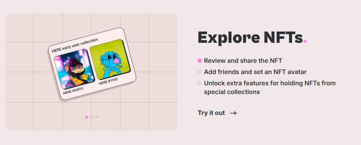 На сайте herewallet app пользователям разъясняют все основные моменты, важные при взаимодействии с площадкой. Процесс заработка здесь тоже детально описан: инвестор может открывать NFT, а также получать прибыль со стейкинга. Странно, что текст здесь полностью на английском языке, хотя создатель является русскоязычным. Непонятно, почему об аудитории из СНГ не позаботились.