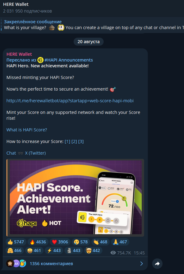 Все главные новости проекта освещаются в телеграм-канале Here Wallet, здесь более 2 млн. подписчиков. Посты же набирают приличные просмотры более 700 тыс., подтверждая подлинность подписчиков. Активность аудитории здесь не вызывает никаких вопросов, претензия же может быть совсем к другому. Последняя запись здесь была опубликована в августе, т.е. 3 месяца назад. Учитывая, что данный тг-канал – главная соцсеть для токена HOT, то это очень критично. Пользователей буквально оставили без новостей на несколько месяцев, хотя многие из них, очевидно, помимо времени, вложили и деньги.
