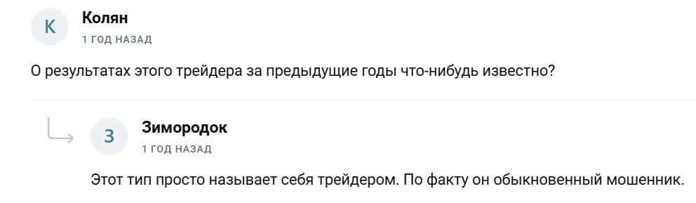 Отметим еще, что трейдер принимает деньги от подписчиков под доверительное управление. Это якобы позволяет новичкам гарантированно получить хорошую прибыль, не особо разбираясь в нюансах торговли на биржах.