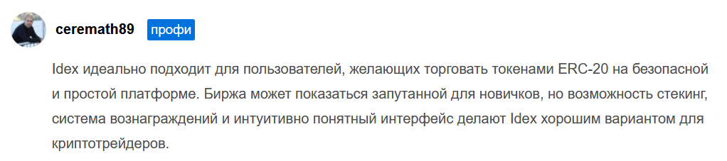 Отзывы о платформе Idex