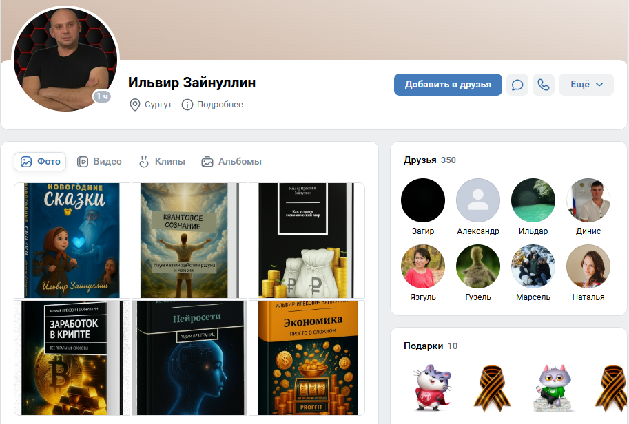 В интернете не так много информации об Ильвире. Отсутствие личного сайта выглядит подозрительно: свою официальную страницу в 2026 году имеют даже начинающие специалисты, что уж говорить о таком «известном» писателе.На сайте Ridero есть информация, что Зайнуллин — автор множества книг, лауреат многочисленных премий и член Союза писателей России. Однако мы не видим никаких ссылок на его награды и регалии. Не факт, что он получил их на самом деле.