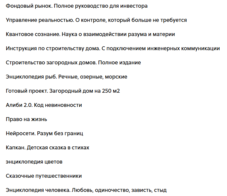 На тех же маркетплейсах у нас есть возможность ознакомиться с другими произведениями Зайнуллина, число которых уже больше нескольких десятков. Автор выпустил «пособия» по фондовому рынку и строительству домов, энциклопедии о рыбах и цветах, трактаты о науке и психологии. Такой невероятно широкий охват тем заставляет сомневаться, что Ильвир является экспертом хотя бы в одной из них.