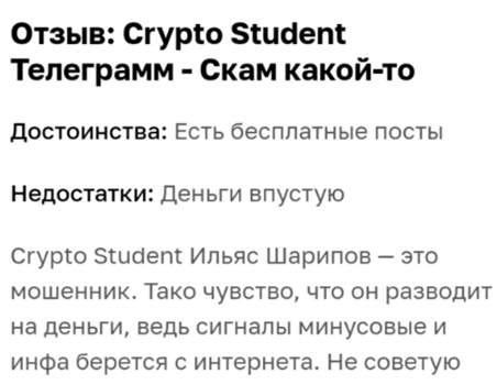 Обзор трейдера Ильяса Шарипова: анализ канала «Крипто студент» в ТГ и отзывов на club student bot