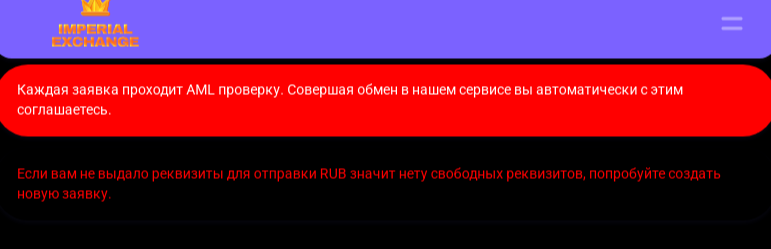 На сайте висит яркое предупреждение, что абсолютно все заявки на площадке проходят AML проверку. Поэтому клиент, совершая здесь обмен, автоматически соглашается с этим условием.
