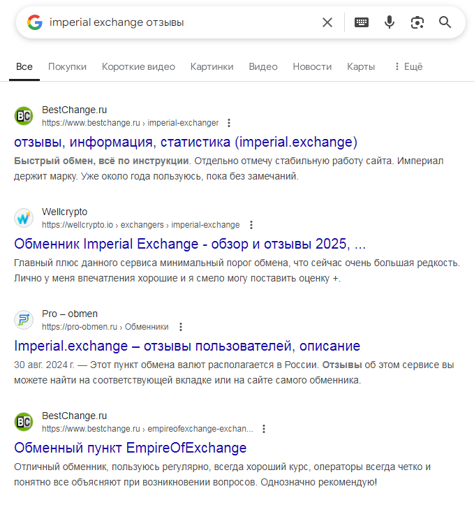 Предположительный возраст проекта – 2 года. Но странно, что за этот период он не заработал определенную репутацию в интернете. На независимых ресурсах нет отзывов в адрес Imperial Exchange. По сути, данный проект вообще не упоминается в сети.