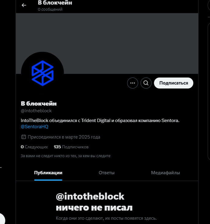 Создатели платформы IntoTheBlock продвигают свой продукт в интернете. Рекламные проекты с одноименными названиями можно увидеть на www linkedin com и medium com. Существует ресурс программы для трейдеров на x com. В социальной сети профиль имеет 135 подписчиков. Создан он был в марте 2025 года. Здесь нет ни одной публикации.