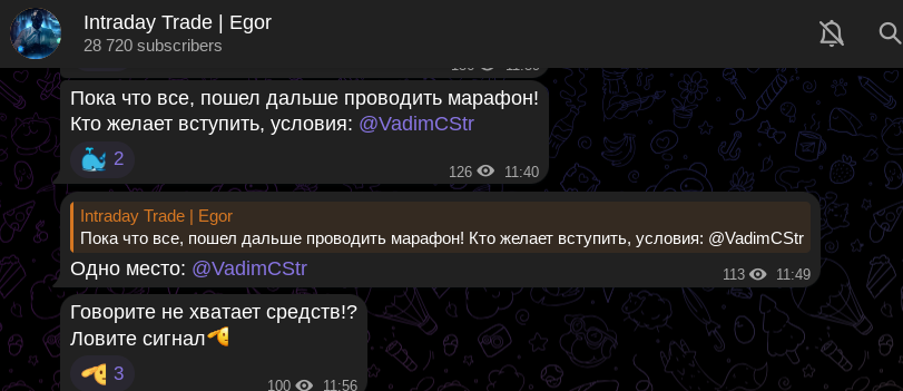 Intraday Trade Egor: отзывы о telegram, обзор Интрадэй Трейд Егор, риски и репутация, развод или нет