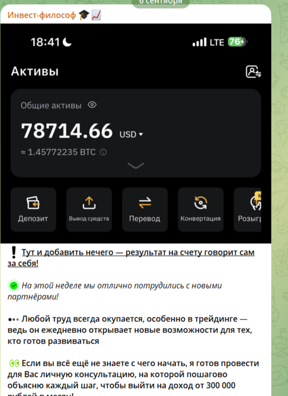 Заработок с инвестором: отзывы о тг канале Инвест Философ