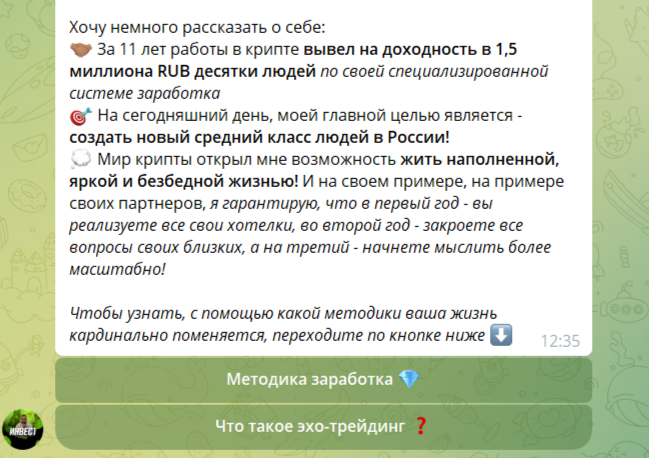 Инвест Философ — тг канал, через который пользователь может узнать об уникальной инвестиционной стратегии. По словам администратора, его разработанный план станет отличным источником заработка для каждого подписчика. В данной статье мы выясним, можно ли доверять инвестору, и реально ли получить деньги посредством следования его финансовым рекомендациям.