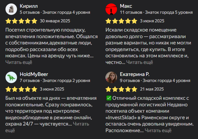 В сети довольно мало отзывов об «Инвест Склад ру», хотя все они положительные, а пользователи говорят про продуманную логистику и хорошие впечатления от сотрудничества.