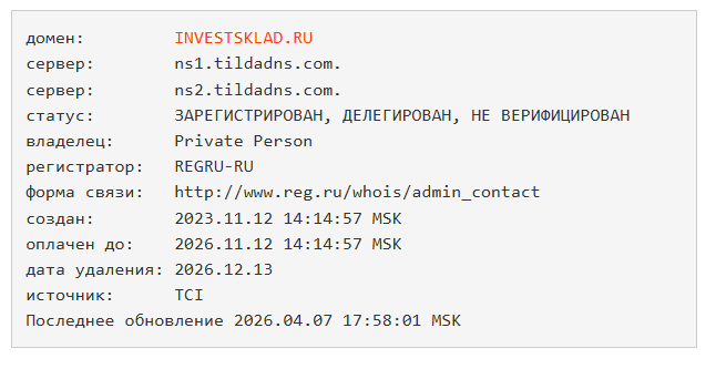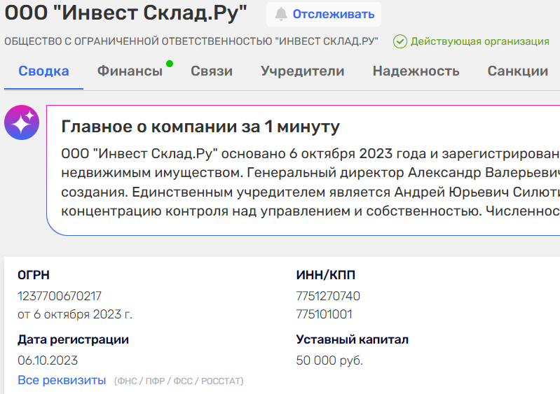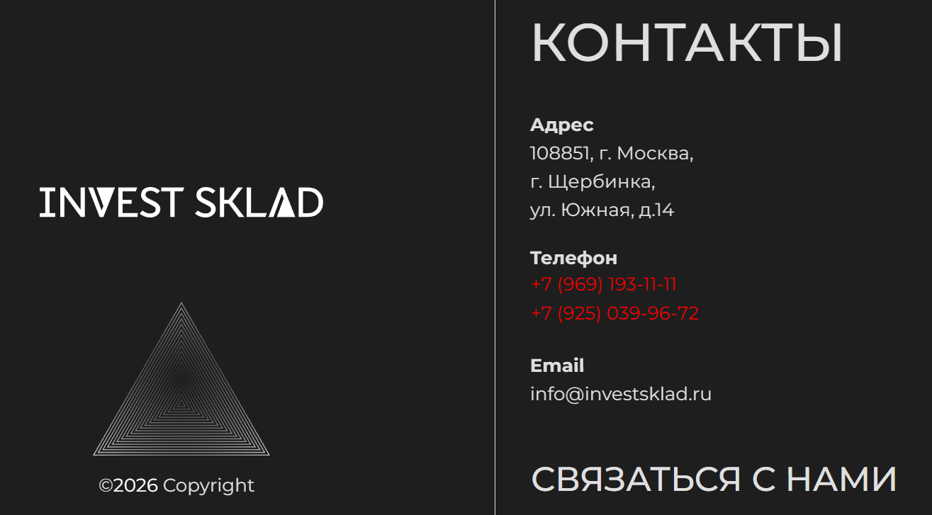 - У компании Invest Sklad нет страниц в социальных сетях, а сайт не требует регистрации и служит только витриной, поэтому проверить реальную деятельность и клиентов невозможно.