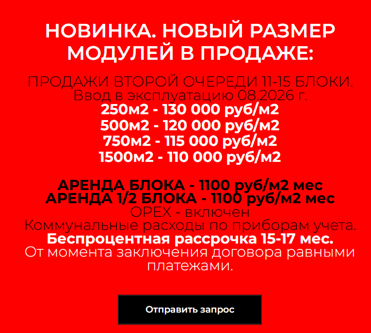 Также у Invest Sklad доступна рассрочка, а еще можно арендовать блоки по цене ₽1,100 за квадратный метр в месяц.Обзор социальных сетей и официального сайта
