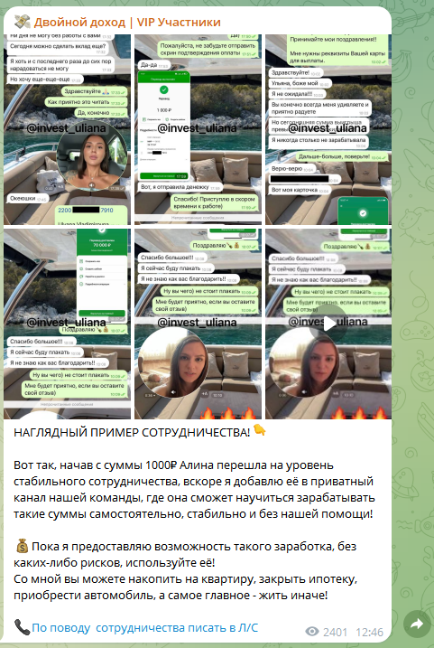 Посты в телеграмм-канале «Двойной доход VIP Участники» представлены четырьмя основными типами: