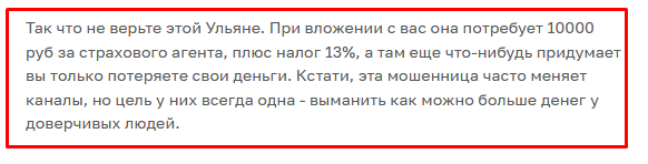 В отрицательных комментариях даже описывается сама система обмана, которая не ограничивается тем, что инвестору не вернут вложенное. Развод намного сложнее. Поскольку с пользователей будут пытаться выманить побольше денег под различными предлогами – страховой агент, налог и т. д. К сожалению, если судить по отзывам, то многие люди верят в то, что им говорят, теряя еще больше своих средств.
