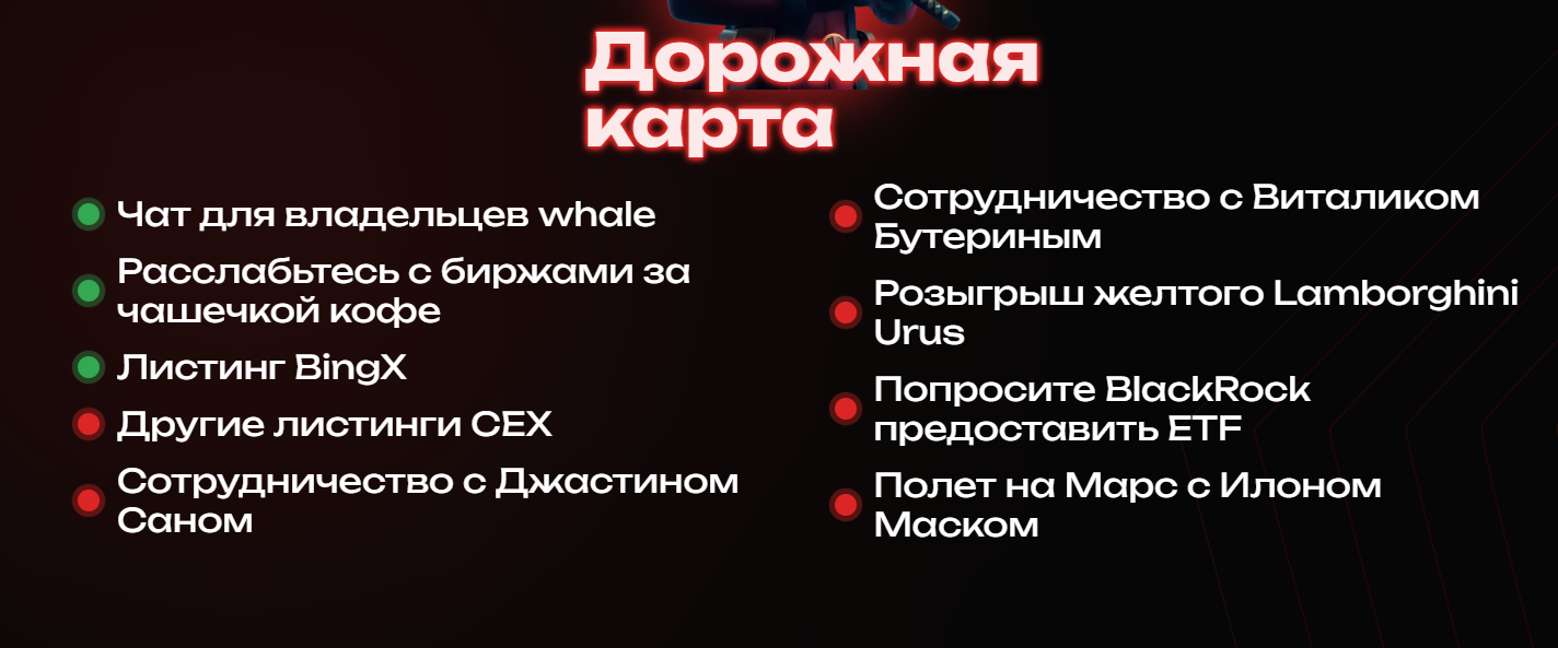 Не можем не отметить, что планы и обещания у Rus Khairullin достаточно громкие. Саму дорожную карту мы также взяли с официального сайта. В ней указано, что токен от Invest zone уже успешно преодолел 3 этапа, одним из которых и стал листинг.