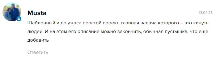 Отзывов на токен Invest zone coin tron мы не обнаружили. Зато на него самого нашли огромное количество негативных отзывов от обманутых клиентов и учеников, а также целые разоблачающие статьи и обзоры. Большинство обвинений склоняется к тому, что он лишь наживается на своей аудитории, продавая ее и получая за это деньги через реферальные программы.