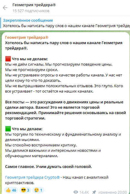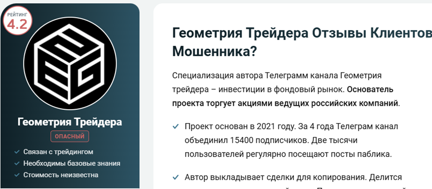 На Телеграм «Геометрия трейдера» отзывов на форумах нет. Проект практически не упоминается и на сайтах с разборами, хотя некоторые специалисты отметили его как опасный.