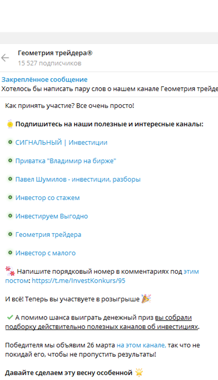 Ряд постов на канале «Геометрия трейдера» может быть полезен для новичков, заинтересованных в инвестициях в российский фондовый рынок. Но мы не советуем слепо верить инвестиционным рекомендациям автора проекта. Дело в том, что статистикой своих сделок трейдер не делится и сохраняет полную анонимность. Поэтому не исключено, что копирование сделок может привести к убыткам.