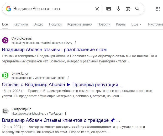 В криптовалютной сфере и блогинге Владимир Абовян находится около 7 лет. За это время он не стал известным и востребованным экспертом. Об этом говорит, то что на октябрь 2025 года в сети его имя упоминается мало, плюс, на его соцсети подписано немного людей.