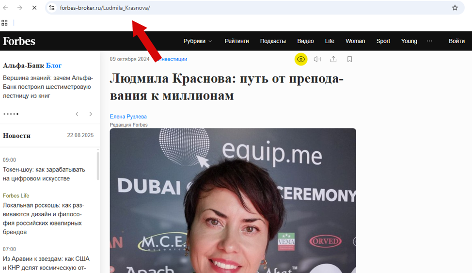 Заслуги эксперта якобы восхваляют десятки авторитетных финансовых и экономических онлайн-изданий. В одном из постов Людмила собрала подборку таких хвалебных статей. Все ссылки ведут на фейковые ресурсы, вероятно созданные мошенниками для поднятия деловой репутации.