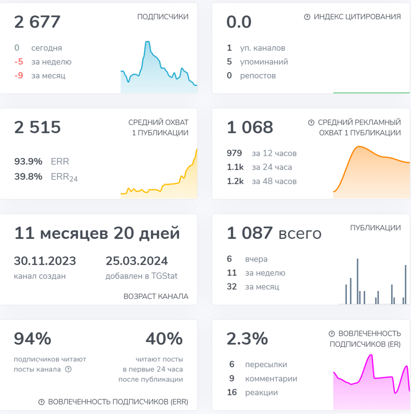 Новые публикации добавляются не ежедневно. Бывают периоды, когда на канале вообще не появляется ни одной записи. Иногда в течение дня может появиться до 6-10 постов. Такая нестабильность говорит, что Телеграмм не является основным направлением деятельности.