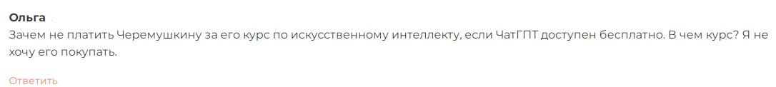 Если кто-то из читателей купил курс «Искусственный интеллект для инвестора» от Черемушкина или планирует это сделать, расскажите об этом в комментариях. Читайте другие обзоры на лекции по трейдингу и инвестициях на нашем сайте, чтобы подобрать действительно полезный материал.