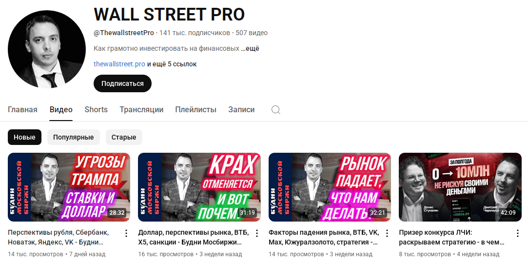 Есть канал на YouTube со 141 тыс. подписчиками. Аккаунт под названием Wall Street Pro Academy постоянно обновляется, появляются новые видео. Видеоролики набирают 10–20 тыс. просмотров, но возможно, часть зрителей — боты. В своих видео Дмитрий рассказывает о перспективах рынка, анализирует текущие тренды, дает инвестиционные советы.