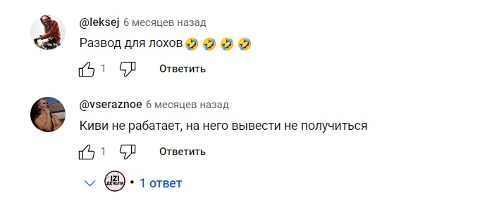 Реакций и комментариев на публикациях нет. Это связано с тем, что автор IZmony их отключил. Скорее всего, это сделано для сокрытия настоящих отзывов. Тем не менее, предыдущие посты попросту удалены. Для дополнительных обсуждений был создан чат zarabotat izi. В нем участвует более 390 человек. Стоит отметить, что все сообщений о скаме или разводе оперативно удаляются. Лайки и дизлайки на канале в Ютуб отключены.