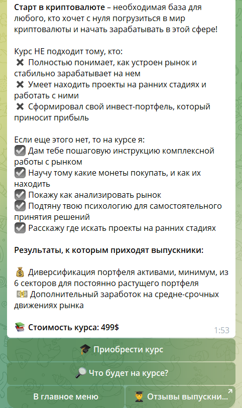 Янина Ким предлагает купить несколько продуктов. Она проводит обучение новичков, после которого обещает, что каждый сможет профессионально торговать на бирже. Его стоимость составляет почти 500 долларов.